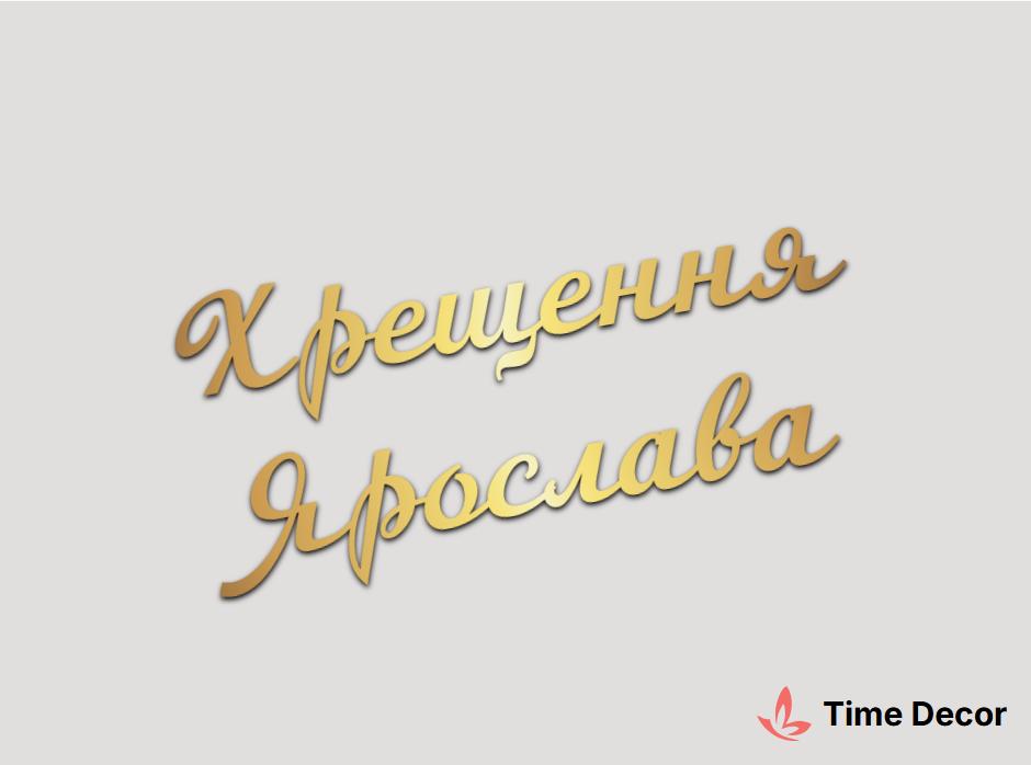 Пластиковий напис "Хрещення Ярослава" – дзеркальний або матовий пластик, можливе виготовлення з клейкою зворотною поверхнею для легкого монтажу.
