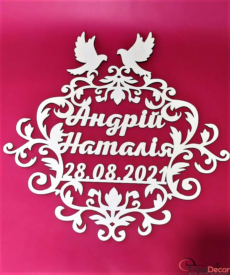 Виготовлена з ХДФ у вибраному кольорі. Ініціали молодят об'єднані у витончений вензель – символ міцного та гармонійного союзу.