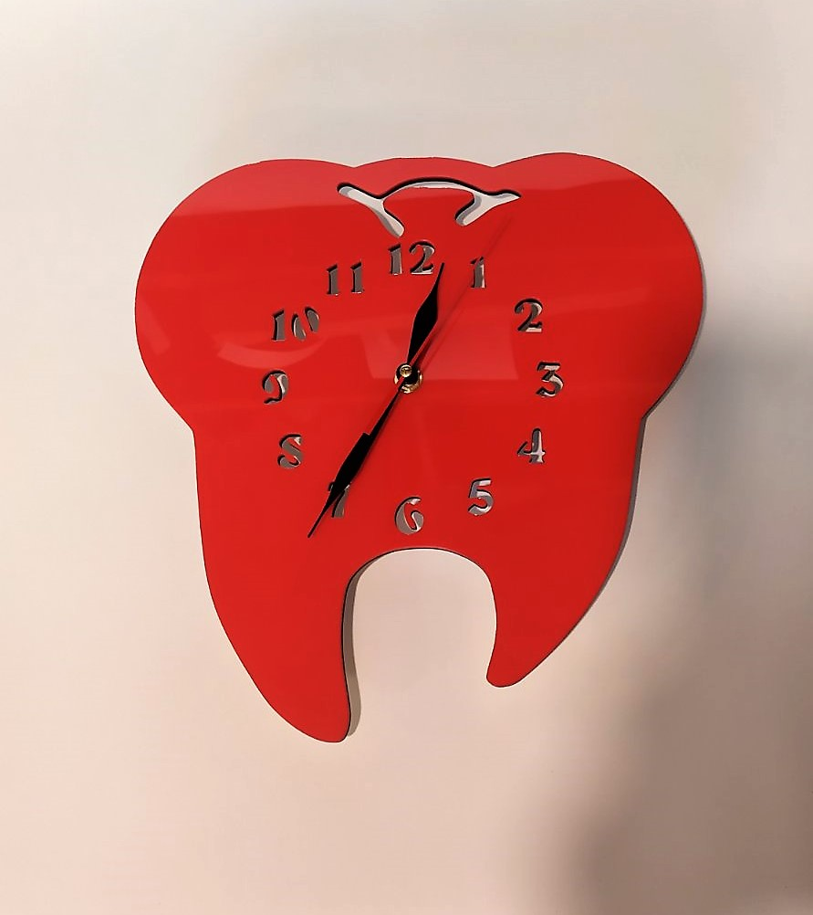 Оригінальний настінний годинник у формі зуба – ідеальне доповнення до інтер’єру стоматологічного кабінету, клініки чи офісу. Він поєднує в собі сучасний дизайн, якість і практичність, привертаючи увагу кожного відвідувача.