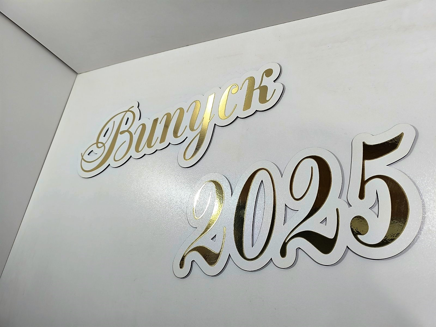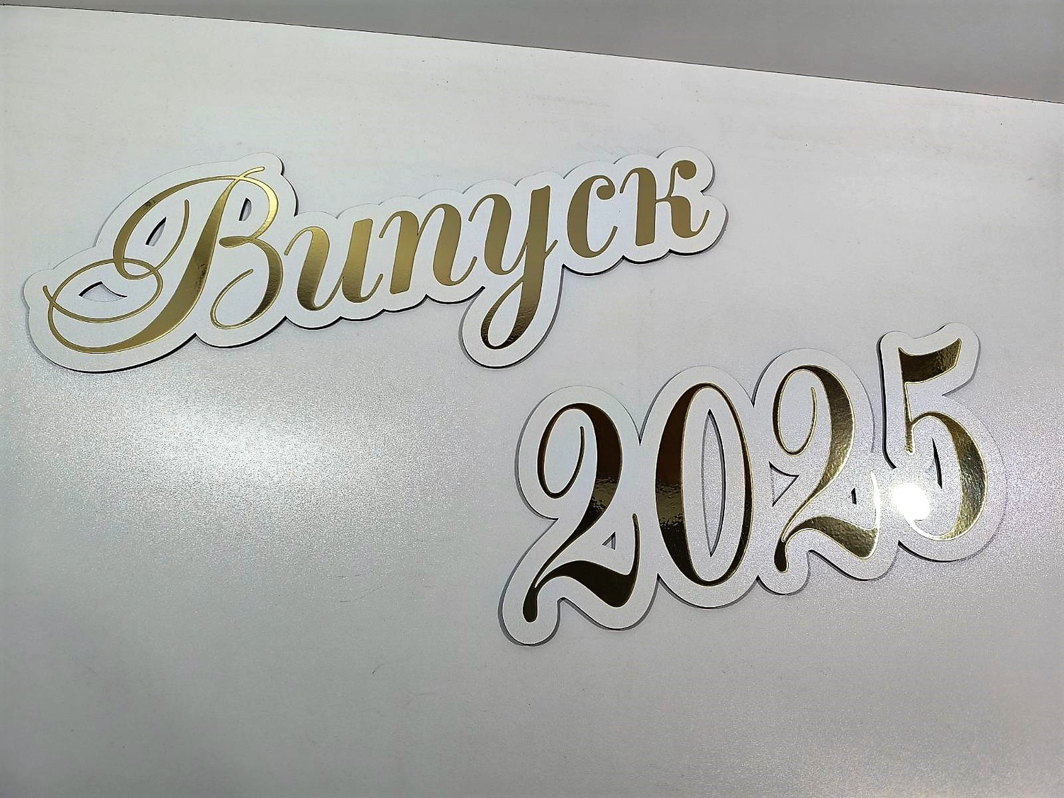 Напис "Випускний" з дзеркального золота стане чудовим вибором для урочистої фотозони. Додайте рік, щоб цей момент залишився незабутнім!